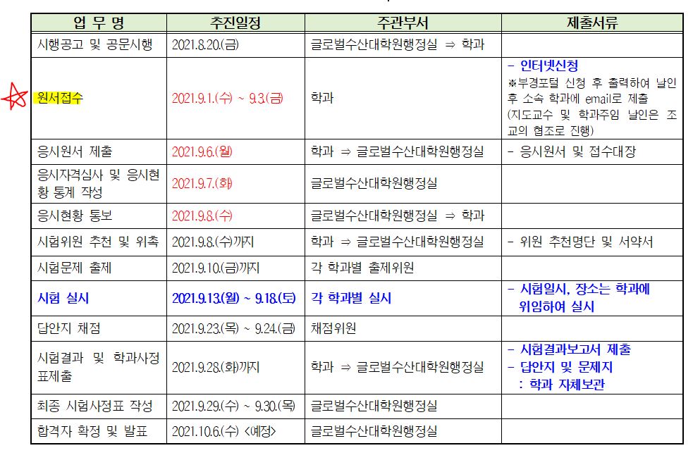 2021학년도 후기 글로벌수산대학원 외국어 및 종합시험 시행계획 안내